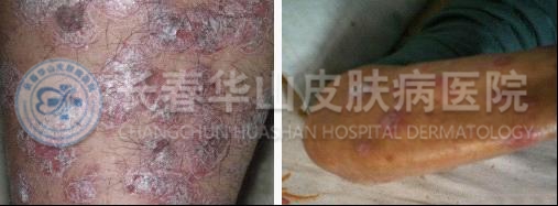 以往治疗经历:来我院就诊之前,朱先生曾情:朱先生38岁由于感冒诱发牛皮癣,至今已经有9年多的病史,无家族遗传史。经检查属于寻常型银屑病。四肢、背部在其妻子的陪同下进行过检查和治疗,试过各种疗法,吃过不少的药物,这些药物和疗法当时效果非常明显,没几天皮损就不见了,但是一旦停药或服药时间一长,银屑病就会立即大规模复发,而且一次比一次严重。