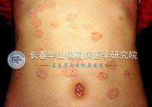 识别牛皮癣还可以从牛皮癣的好发部位着手。牛皮癣好发于如头部、四肢、前胸、后背等裸露部位。最初主要累及头皮,引起头屑增多,头皮上可看到白灰色的斑块,用手触摸会觉得斑块比周围的皮肤要突出。用指甲轻轻地刮就会有细小的皮屑掉下来,皮屑刮掉后,可见皮肤上有小血点。