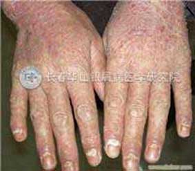 ¡¡¡¡3¡¢»¼´¦Æ¤ÕîÌØµã£º»¼´¦ÖÜΧÓÐÑ×Ö¢ºìÔΣ¬´ËÍâºì°ß±íÃæÓÐÒ»²ã»Ò°×É«»òÒø°×É«ÁÛм£¬ÇáÇá»á¶³öÒ»²ãµºìÉ«·¢ÁÁµÄ°ë͸Ã÷±¡Ä¤¡£