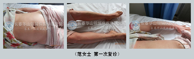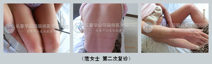 因范女士既往身体康健,无糖尿病,解热镇痛药物过敏史,经全面检查了解其病情后,根据其自身的病情严重程度,为范女士采用了“3D净血疗法”结合“药离子渗透疗法”进行全方位由内而外治疗,从人体免疫力着手,提高机体免疫力,改善机体循环系统;再结合药离子渗透疗法,通过皮肤毛孔吸收渗透,有效避免口服药物经过胃肠道吸收的副作用,从而做到真正的由内而外,标本兼治的效果,避免银屑病反反复复。(<<<点击查看 3D净血疗法>>>)