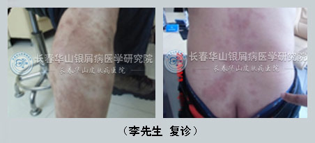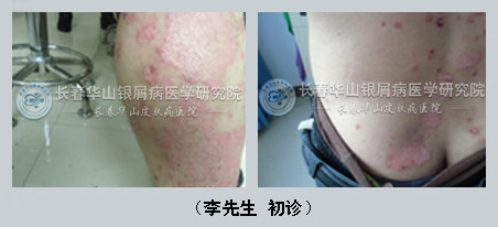 【患者自述】48岁的李先生已经患牛皮癣有近10余年之久,据李先生介绍刚开始患病的时候,只是腿部出现了一些小红斑,一开始以为是什么过敏,也就没在意。可是后来腿部开始有骚痒感,红斑不仅没有消退,反而扩散面积更大,现在连背部都有好我。于是才引起重视,去医院才被告知患上了牛皮癣,于是开始使用各种药物,可始终不见好转。后经子女来于2012年12月11日来到长春博润银屑病医院。
