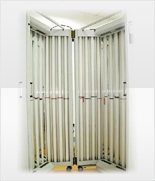 根据其型式分为全身治疗仪、手足治疗仪、便携治疗仪、手持治疗棒四种共5个型号。UV1000KL:全身治疗仪;辐射灯管:26 UVB TL01灯管;功耗:3000W;辐射频谱:UVB TL01灯管:310~315nm,最大峰值:311nm。