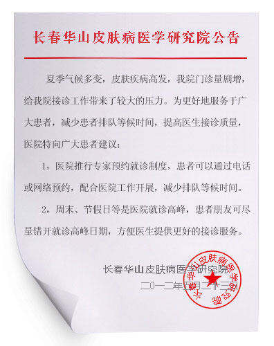 为解决患者挂号难题、推动医疗合理分流,帮助患者合理避开就诊高峰期,长春博润皮肤病医院特发布公告: