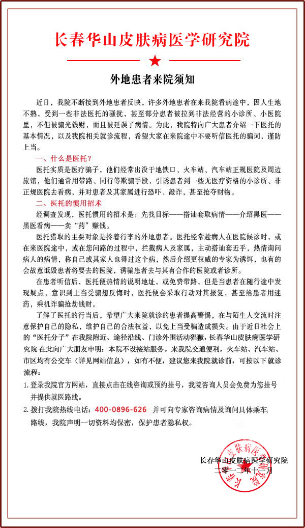 1、文章内容仅供参考,不作为疾病诊疗依据,患者请前往长春博润皮肤病医院。