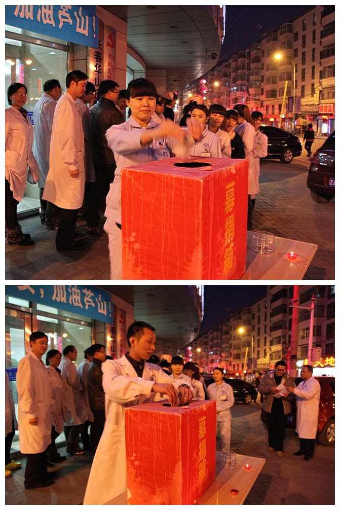 (图:我院医务工作人员以及热心市民为雅安同胞捐赠爱心善款)
