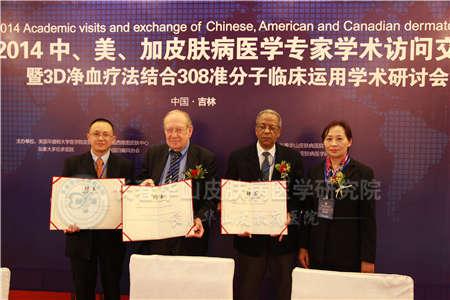 2014年5月,汇聚中美加三国皮肤病医学专家、博士团的全球皮肤病学术访问在中国吉林拉开帷幕,美国华盛顿大学医学院皮肤科主任伯纳德葛菲教授、加拿大渥太华大学医学教授巴里皮特、美国俄勒冈健康科学大学医学院临床教授宋建明、加拿大杰克南森健康中心医学专家迈克尔恺撒、中国牛皮癣协会会长孟中平教授等众多国际国内知道皮肤科领军人物、权威专家,就各国目前皮肤病行业现状,皮肤病学科前沿技术,皮肤病跨国合作等课题进行探讨,旨在共同推进各国皮肤病事业发展并促进全球皮肤病行业质的飞跃。
